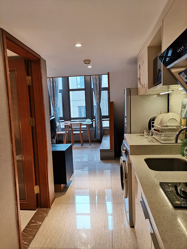 房间洗衣机、冰箱,电饭煲、微波炉、电磁炉、餐具、厨具一应俱全;管家式物业服务,24小时热水供应。