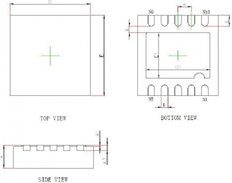 MG127管脚采用DFN10 封装,芯片大小为3mm x 3mm