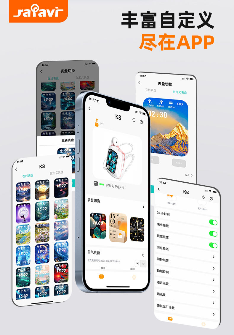 7. 个性化屏保:自带多种屏保,支持手机本地相册图片。并且支持将图片上传到耳机充电仓以设置为屏保。