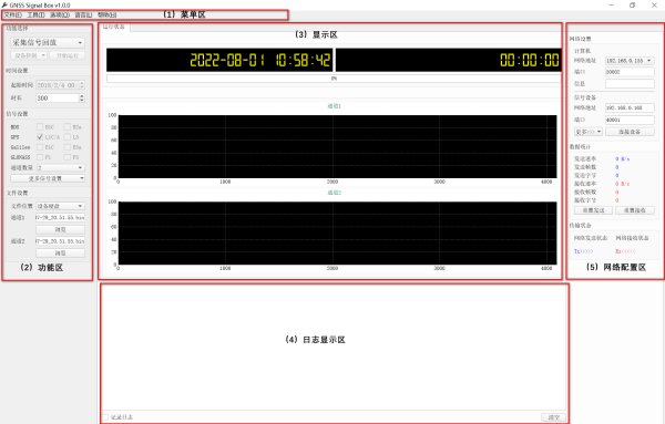 - 功能区:包括功能选择、时间设置、信号选择、通道选择、文件设置等功能的设置。