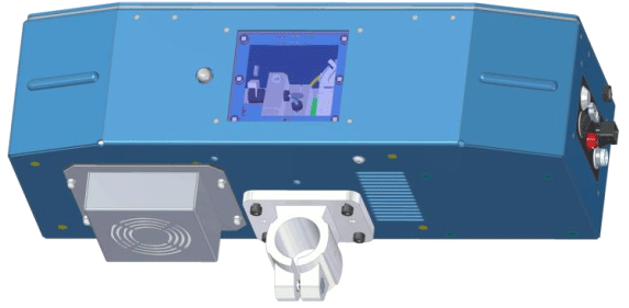 Fiber-coupled lasers (with red and/or green laser source) are applied with output power of 7 mW. When requested, output power up to 28 mW is possible. The range of standard optic focus is 0.5 m to 7.0 m.With a tele-optic, working distances up to 14 m can be realized. For higher ambient temperatures there are several cooling options available such as extended air hose or water cooling system.